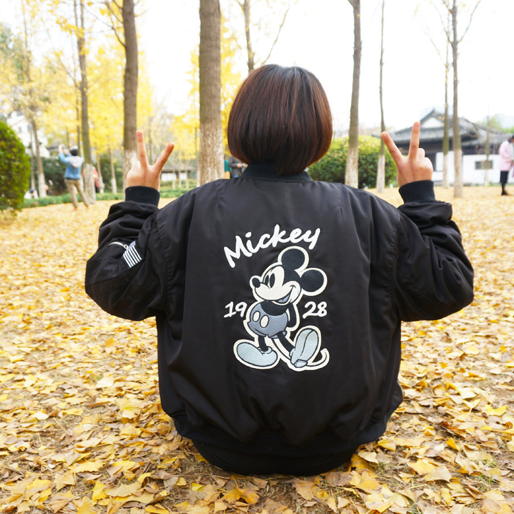 2015新款韓版短款米奇刺繡加厚休閑寬松夾克短外套學(xué)生棒球棉服女 /
