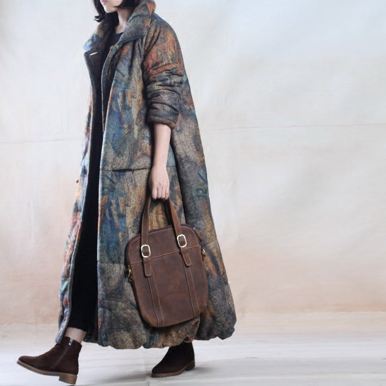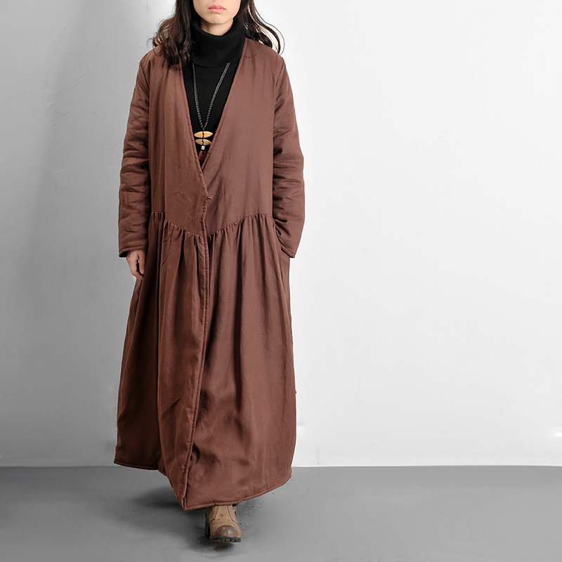 解愛 焦糖 原創(chuàng)文藝女裝 禪意斜襟長款亞麻棉袍子棉服棉衣冬新款 /