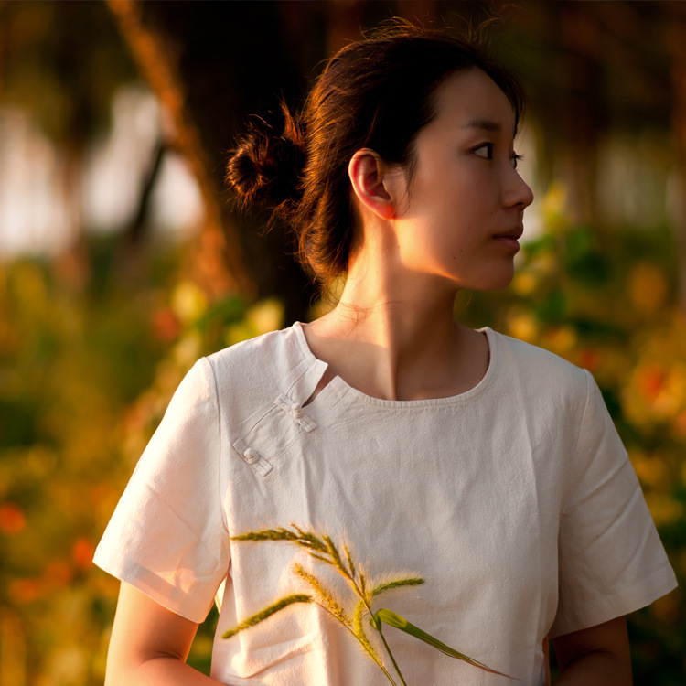 原創(chuàng)設計新夏肌理棉麻短袖手工盤扣中式改良T恤文藝氣質上衣 /