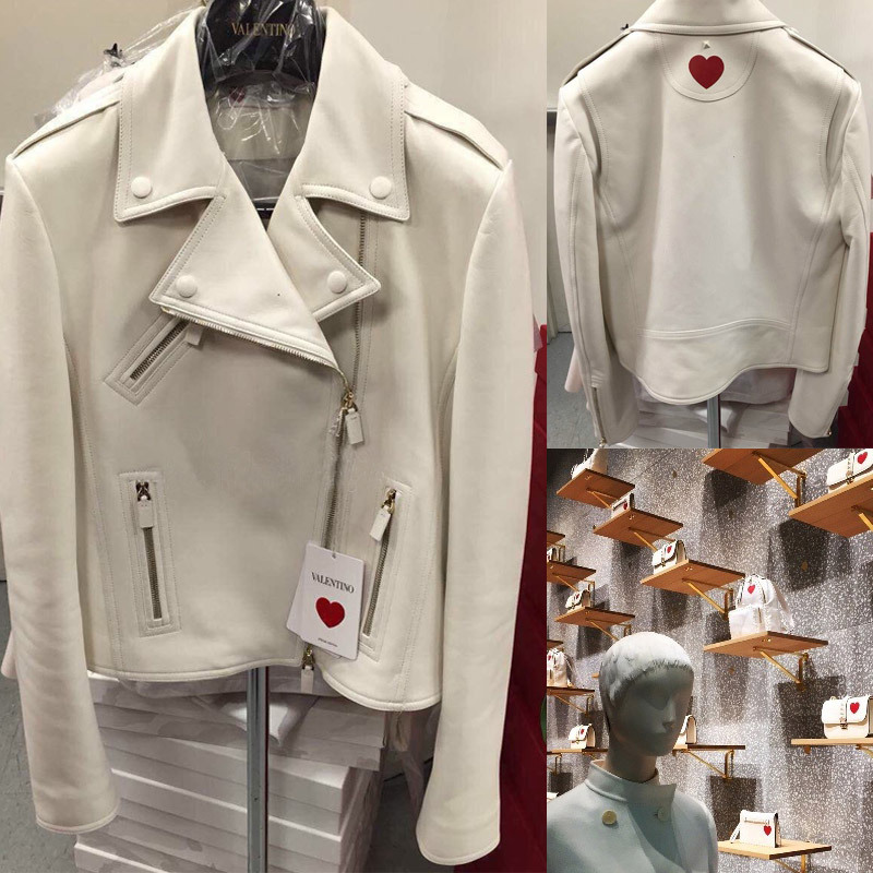 2015秋新款V家純白愛心白色機(jī)車女士真皮夾克特價(jià)短款皮衣外套 /
