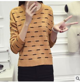2015秋季新款毛衣長袖圓領(lǐng)套頭寬松大碼針織套頭女式針織衫 /