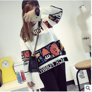 2015秋冬季韓版寬松毛衣撞色字母數(shù)字圖案套頭女式針織衫潮 /