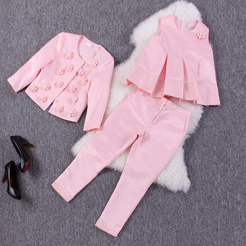 廠家直批女裝新款謝娜明星同款手工訂棉球花外套+鉛筆褲三件套裝 /
