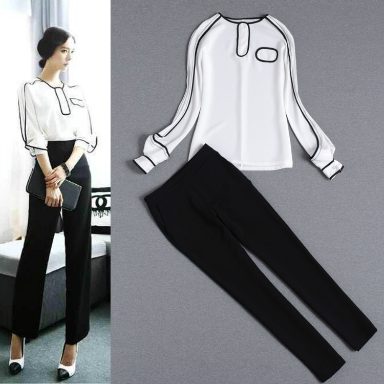 廠家批秋季新款品牌女裝網(wǎng)絡(luò)紅人菁菁同款拼接撞色上衣+長(zhǎng)褲套裝 /