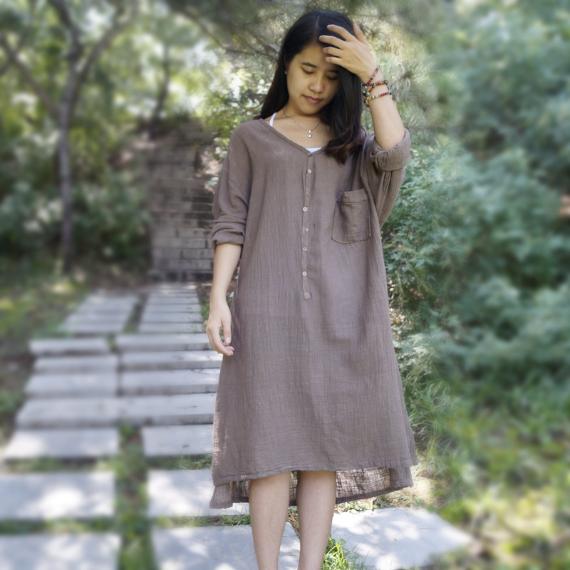 供應(yīng)批發(fā)女式棉麻上衣春季新款棉麻中長款襯衫女士文藝單排扣套衫 /