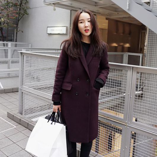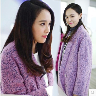 韓國(guó)克拉戀人唐嫣米朵同款秋冬韓版毛呢外套女紫色呢子大衣批發(fā) /