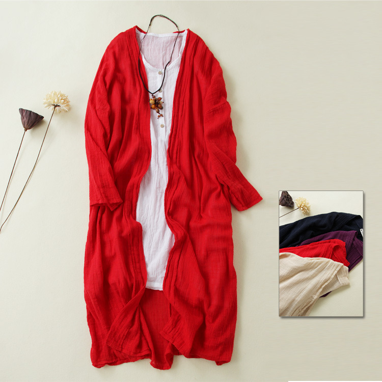 棉麻記2015夏秋款明質(zhì)感立領(lǐng)七分袖長衫襯衫開衫復(fù)古文藝 /