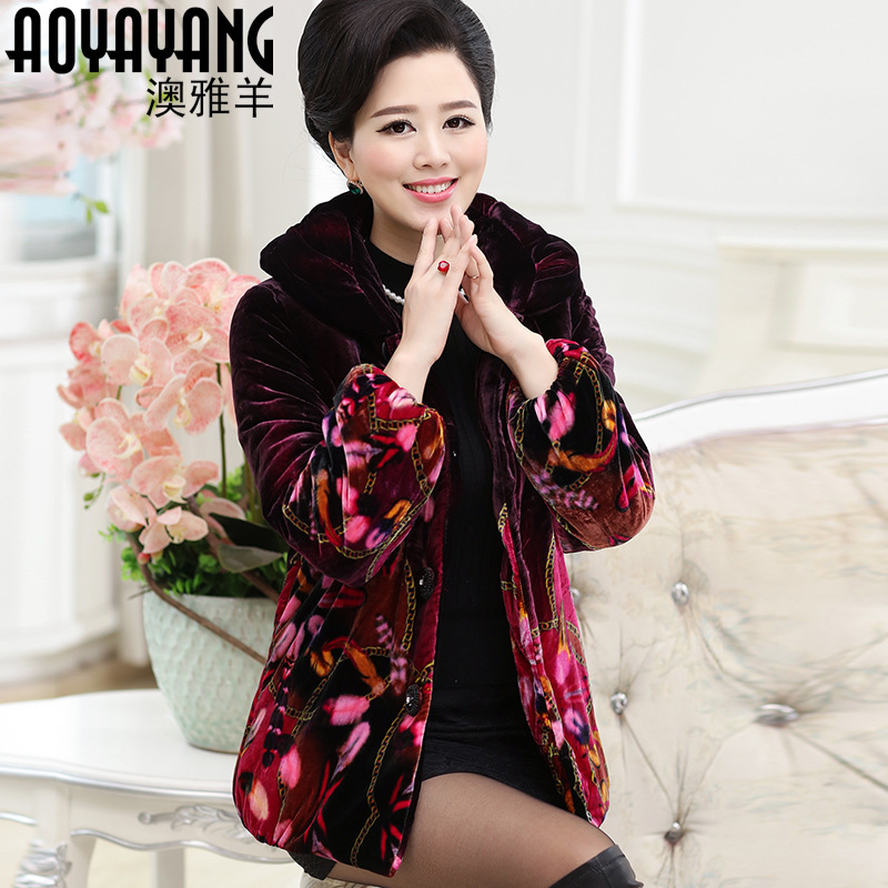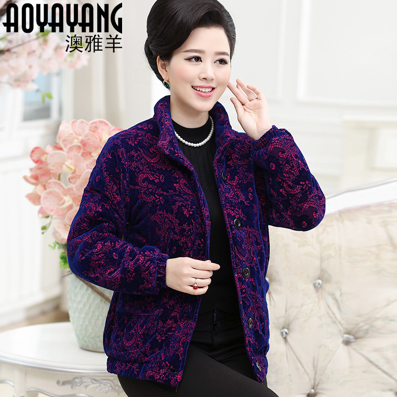 中老年女裝2015冬季新款真絲絨手繪花加厚女式棉衣媽媽裝大碼棉襖 /