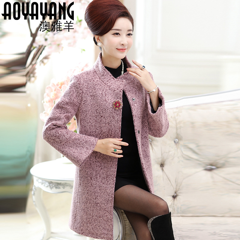 2015冬季新款中老年媽媽裝中長款厚款女式羊毛大衣休閑毛呢風(fēng)衣女 /