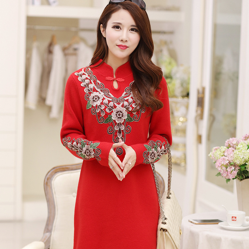 民族風(fēng)貂絨毛衣女套頭韓版2015冬新款中長款 刺繡貂絨衫修身 /