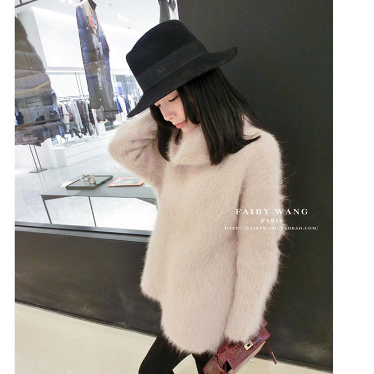 長毛水貂絨衫中長款加厚寬松高領(lǐng)套頭毛衣女堆堆領(lǐng)貂絨外套打底衫 /