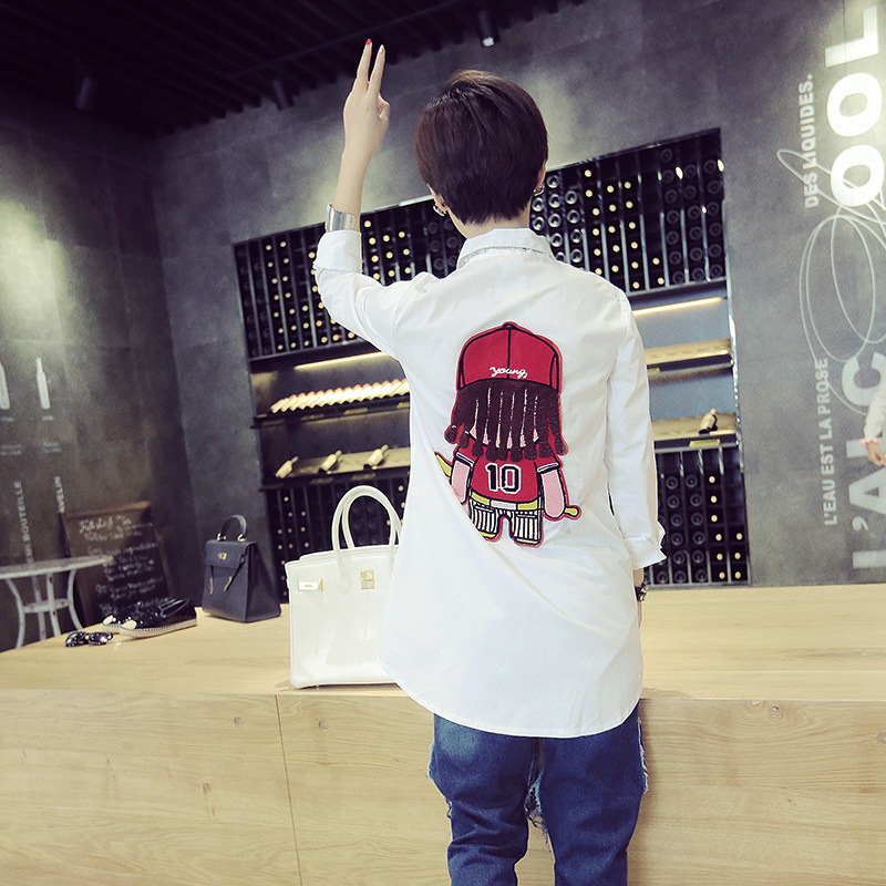 歐洲站秋季新款女裝翻領(lǐng)長袖卡通貼布圖案韓版百搭休閑襯衫 /