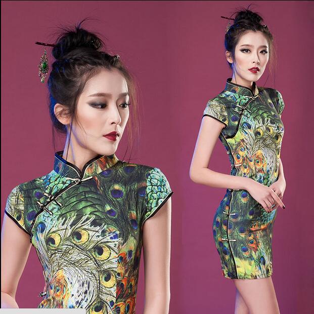 2015春夏旗袍孔雀民族風改良旗袍連衣裙斜襟盤扣花色舞臺表演日常 /