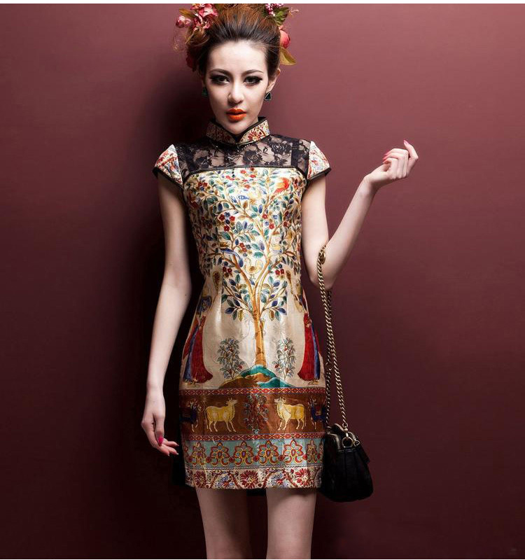 【金樹】改良時尚個性中式短旗袍 仿真絲 修身顯瘦限時 /