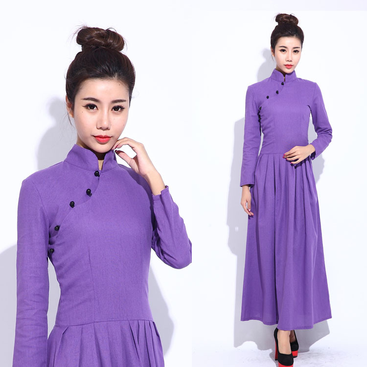 【20】2015秋季女裝改良旗袍長款純色素色長袖中袖無袖中式連衣裙 /