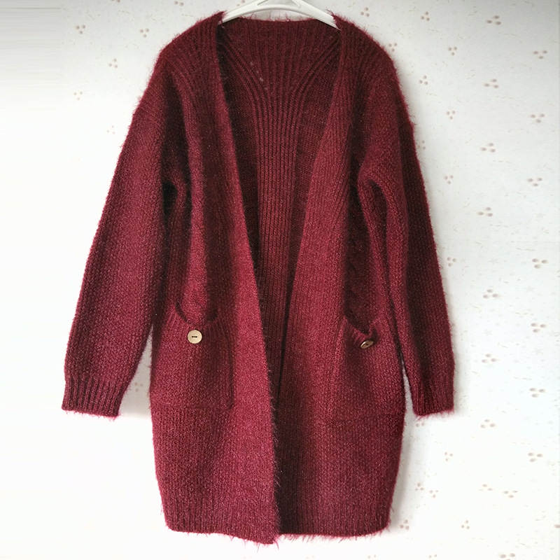 時(shí)尚針織毛衣2015春裝新款女韓版寬松無(wú)扣口袋外套歐美中長(zhǎng)款開(kāi)衫 /