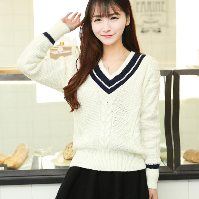 v領(lǐng)長(zhǎng)袖麻花女式套頭毛衣 女 2015韓版新款女裝 女式針織衫 批發(fā) /