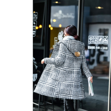 韓國(guó)冬季新款加厚連帽中長(zhǎng)款毛呢外套雙面呢大衣羊毛呢子女裝批發(fā) /