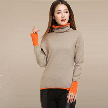 2015秋冬羊毛衫 女士新款堆堆領(lǐng)短款拼接針織休閑打底衫 廠家直銷 /