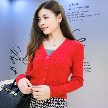 2016春秋新款女士超短款百搭羊絨衫修身純色針織衫外套 廠家直銷 /