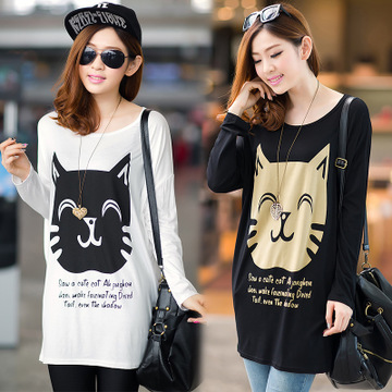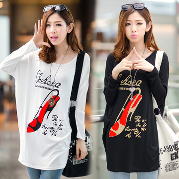 2016韓版胖mm大碼寬松蝙蝠袖中長款圓領(lǐng)長袖T恤打底衫上衣女 /