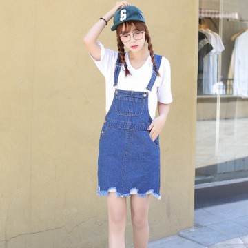 2016夏季新款女裝牛仔背帶裙女寬松顯瘦韓版高腰背帶短裙女批發(fā) /