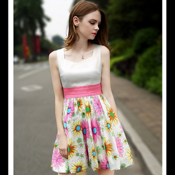2016夏裝新品高端女裝修身顯瘦印花無袖燈籠裙連衣裙女批發(fā)高質(zhì)量 /