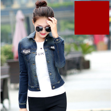 2016春季新款韓版女裝修身牛仔外套百搭破洞釘珠牛仔外套女批發(fā) /