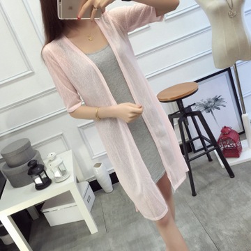 2016春秋新款韓版女毛針織衫中長(zhǎng)款顯瘦五分袖外套防曬衣薄款 /