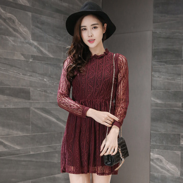 2016韓國(guó)東大門(mén)代購(gòu)春裝新款韓版性感蕾絲碎花大碼打底裙連衣裙女 /