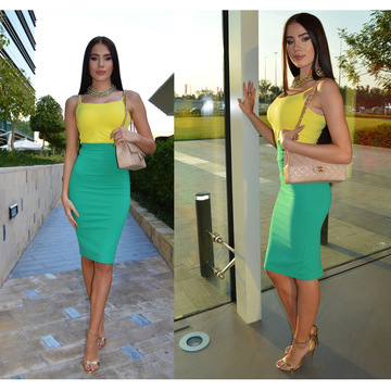 S9590性感歐美名模拼接修身連衣裙一件代發(fā)夢凱同款2016歐洲站 /