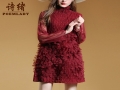 詩緒時(shí)尚優(yōu)雅2016春裝新款彈力壓褶修身顯瘦長袖大牌中長 /