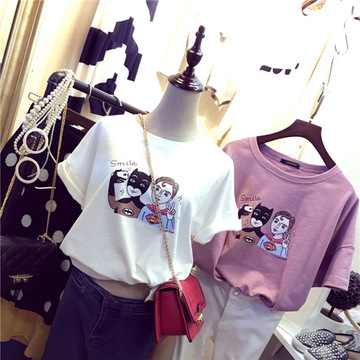 惡搞超人蝙蝠俠自拍印花休閑百搭彈力短袖T恤女 /