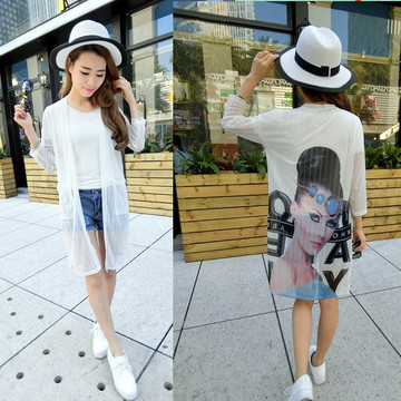 百搭披肩2016開衫薄防曬衣冰絲棉中長款印花空調(diào)衫 /