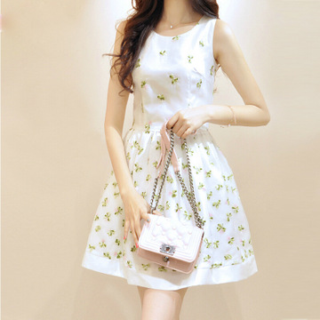 2016夏季韓版修身顯瘦氣質(zhì)蓬蓬裙無袖背心連衣裙 /
