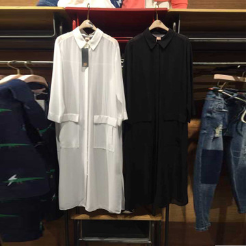 現(xiàn)貨微信代理2016夏新款韓版兩色雪紡中長款襯衫JQWS320A一件代發(fā) /