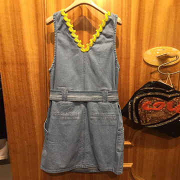 預(yù)售微信代理2016夏新款字母刺繡水洗牛仔背帶連衣裙JQOP321A代發(fā) /