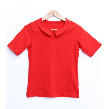 2016夏新款復(fù)古文藝純棉t恤 純色翻領(lǐng)短袖T恤女 /