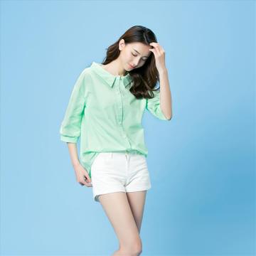 【實(shí)拍】春裝新款純棉文藝范七分袖寬松襯衣棉麻女士襯衫 /