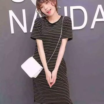 2016夏裝新款韓版百搭寬松時尚休閑顯瘦條紋短袖連衣裙女裝潮 /