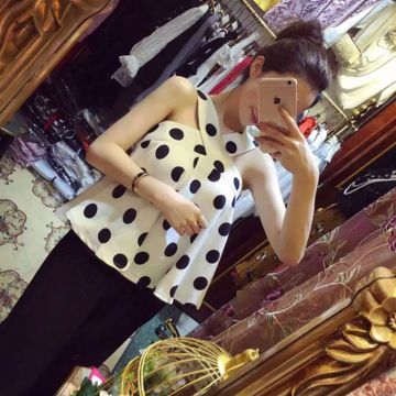 2016露肩掛脖無袖T恤女韓版修身顯瘦露背交叉上衣純棉打底衫上衣 /