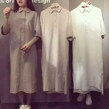 2016新款女裝韓版長款純色翻領(lǐng)打底襯衫裙子中袖寬松夏季連衣裙 /