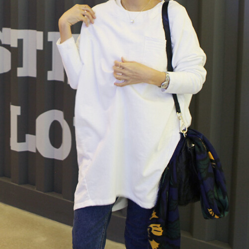 春秋裝新款韓版大碼女裝寬松中長款長袖T恤體恤裙胖mm女士打底衫 /