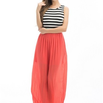 簡介: 風(fēng)格歐美 圖案條紋 工藝拼貼/拼接 產(chǎn)地廣州 庫存類型整單 款式基本款 組合形式單件 裙長長裙 裙型百褶裙 領(lǐng)型圓領(lǐng) 袖型常規(guī)袖 品牌憶涵 袖長無袖 腰型高腰 衣門襟套頭 流行元素拼接,印花 上市年份/季節(jié)2016夏季 面料名稱雪紡 尺碼均碼
