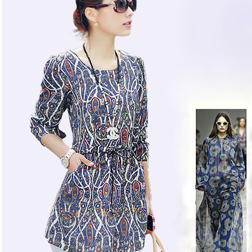 2016夏季大碼女裝打底衫 韓版中長(zhǎng)款長(zhǎng)袖上衣小衫 雪紡衫女 /