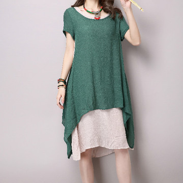 新款女裝2016棉麻兩件套裝連衣裙子長(zhǎng)款亞麻長(zhǎng)裙套裙夏 /