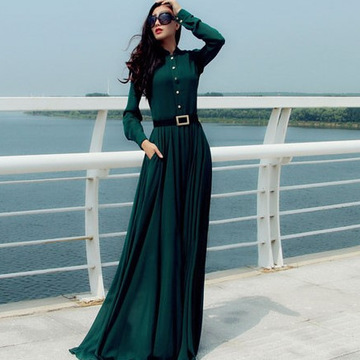 速賣通爆款高端大牌氣質(zhì)復(fù)古長(zhǎng)袖連衣裙拖地長(zhǎng)裙大碼女裝 /