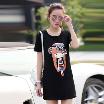 2016夏季女裝新款 韓版學(xué)生全棉中長款大碼短袖T恤 連衣裙 潮 /