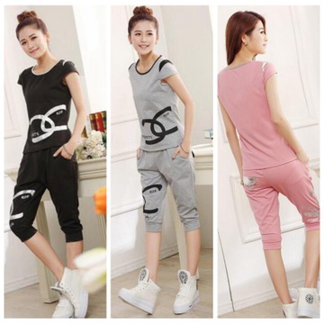 2016新款韓版雙C短袖+七分褲修身顯瘦時(shí)尚運(yùn)動(dòng)休閑兩件套裝 /
