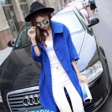 廠家直銷高端大牌秋冬季中長(zhǎng)款修身順毛斜紋羊絨呢大衣女加厚外套 /